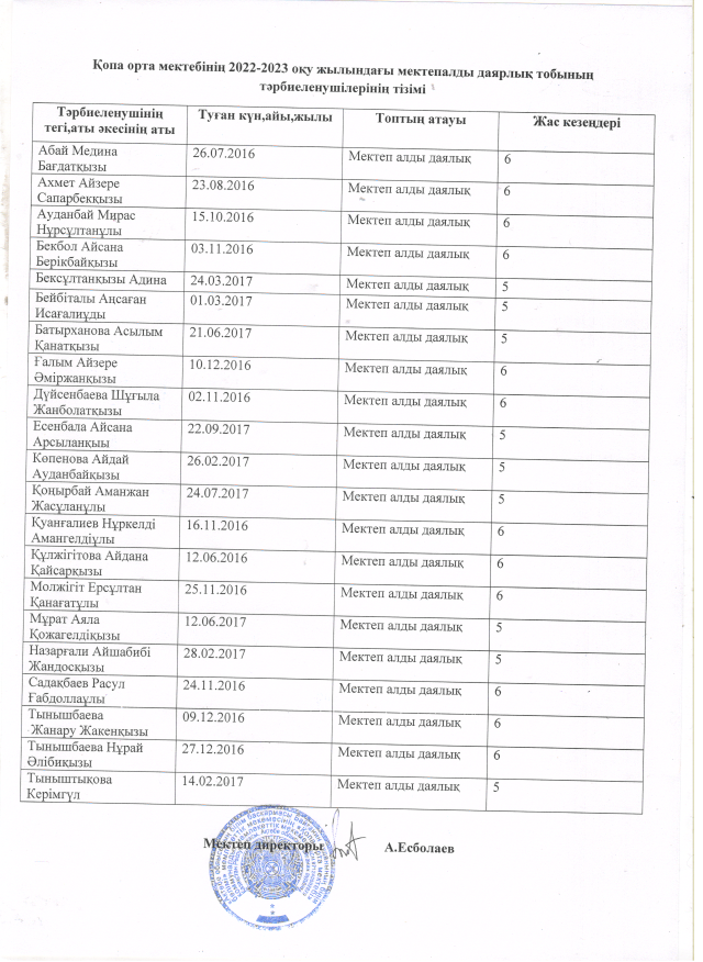 Мектеп алды даярлық тізімі 2022-2023