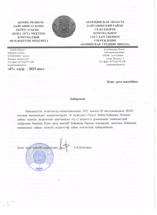 14 пунк. Маман жөніндегі хабарлама